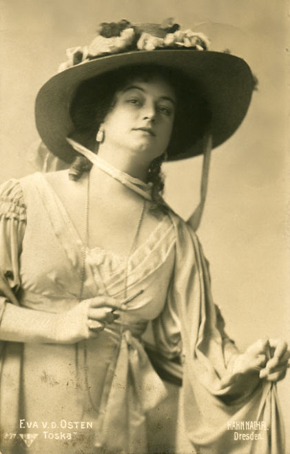 Osten, Eva von der, Sopran, * 19.8.1881 auf der Insel Helgoland, 5.5.1936 Dresden; ihre Eltern waren die Schauspieler Emil von der Osten (1847-1905) und Rosa von der Osten-Hildebrandt (1850-1911); ihre Schwester Vally van Osten (1882-1923) wurde eine bekannte Sopranistin; sie heiratete den Tenor Fritz Windgassen (1883-1963) und war die Mutter des berühmten Wagner-Tenors Wolfgang Windgassen (1914-74). - Eva von der Osten wollte zunächst Pianistin werden, wurde dann aber durch August Iffert in Dresden zur Sängerin ausgebildet. Sie debütierte 1902 an der Dresdner Hofoper als Page Urbain in Meyerbeers »Hugenotten« und ist bis zum Ende ihrer Karriere Mitglied dieses Hauses geblieben. Bereits 1903 wirkte sie in Dresden in der Uraufführung von Leo Blechs »Alpenkönig und Menschenfeind« mit. Nachdem sie in Dresden zuerst kleinere Partien gesungen hatte, erregte sie dort 1908 als Tatjana im »Eugen Onegin« von Tschaikowsky großes Aufsehen. Sie gehörte bald zu den beliebtesten Künstlern der Dresdner Oper; auch ihr Gatte, der Bariton Friedrich Plaschke (1875-1952), war an der Oper von Dresden engagiert. Am 26.1.1911 sang sie in der glanzvollen Uraufführung des »Rosenkavaliers« von Richard Strauss in Dresden den Octavian, die gleiche Rolle 1911 in der holländischen Erstaufführung der Oper im Haag und an verschiedenen deutschen Theatern, 1913 in der Erstaufführung des Werks an der Covent Garden Oper London. 1916 wirkte sie an der Dresdner Hofoper in der Erstaufführung der Oper »Höllisch Gold« von J. Bittner mit, 1918 in der Premiere von »Der ferne Klang« von Fr. Schreker, 1920 in der Uraufführung von »Schirin und Gertraude« von Paul Graener. Ihre Gestaltung der Rolle der Färberin in der Dresdner Premiere der Richard Strauss-Oper »Die Frau ohne Schatten« bezeichnete der Komponist als »großartig«. Seit 1906 gastierte sie regelmäßig an der Komischen Oper Berlin. In Dresden wie an der Komischen Oper Berlin kreierte sie in der Saison 1908-09 die Titelpartie in der Premiere von Leoncavallos Oper »Zazà«, 1912-13 die Blanchefleur in »Der Kuhreigen« von W. Kienzl. Sie trat als Gast an der Berliner Hofoper (1902, 1907), am Théâtre de la Monnaie Brüssel (1913, 1914) und an der Oper von Boston (1912-13) auf. Am Théâtre des Champs-Élysées Paris sang sie 1914 die Isolde im »Tristan«, beim Amsterdamer Wagner-Verein die Brünnhilde in der »Walküre«. 1914 sang sie in der englischen Premiere des »Parsifal« an der Covent Garden Oper London die Kundry, 1913 am His Majesty's Theatre London die Ariadne in der englischen Erstaufführung von »Ariadne auf Naxos« von R. Strauss unter Sir Thomas Beecham. 1923-24 gehörte sie, zusammen mit ihrem Gatten, der German Opera Company an, mit der sie Nordamerika durchreiste. Dabei trat sie sehr erfolgreich als Isolde im »Tristan« und als Sieglinde in der »Walküre« auf. 1926 wirkte sie an der Dresdner Oper in der Uraufführung der Oper »Die Hochzeit des Mönchs« von Alfred Schattmann mit. 1930 verabschiedete sie sich als Brünnhilde in der »Walküre« in Dresden von der Bühne, während Friedrich Plaschke den Wotan sang. Sie betätigte sich aber noch weiter an der Dresdner Staatsoper als Regisseurin; so führte sie 1933 in der Uraufführung der Richard-Strauss-Oper »Arabella« Regie. Kurz nach dieser Uraufführung erlitt sie einen Schlaganfall, der ausgedehnte Lähmungen hinterließ. Von ihrer ausdrucksstarken, hochmusikalischen Sopranstimme sind schöne Schallplattenaufnahmen erhalten, die auf den Marken G & T (Dresden, 1905), HMV, Columbia und Pathé anzutreffen sind. Darunter finden sich auch Duette mit Friedrich Plaschke. Unter den HMV-Aufnahmen sind Ausschnitte aus dem »Rosenkavalier« in der Besetzung der Uraufführung vorhanden, die auch auf Odeon zur Ausgabe kamen.