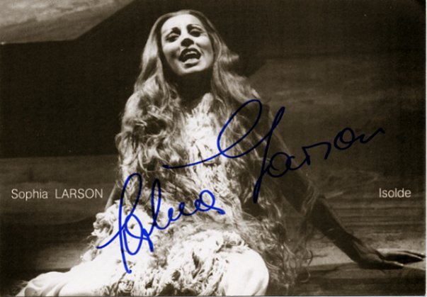 Larson, Sophia, Sopran, * 1954 Linz/Donau; während die Künstlerin in einem Krankenhaus arbeitete, wurde ihre Stimme durch eine ältere Opernsängerin entdeckt. Darauf begann sie ihre Ausbildung am Salzburger Mozarteum bei Frau Seywald-Baumgartner. Weiterführende Studien bei Ettore Campogalliani und bei Josef Metternich. Sie fand 1976 ihr erstes Engagement am Theater von St. Gallen, wo sie als Amelia in Verdis »Simon Boccanegra« debütierte und dann ihre ersten großen Erfolge als Ilia in »Idomeneo« von Mozart und in Mascagnis »Zanetto« hatte. 1979-80 sang sie am Stadttheater von Ulm u.a. die Leonore im »Fidelio«, eine ihrer größten Kreationen, die Fiordiligi in »Così fan tutte«, die Marschallin im »Rosenkavalier« und die Titelrolle in »Katja Kabanowa« von Janácek. 1980-83 war sie Mitglied des Stadttheaters von Bremen und kam nun schnell zu einer großen internationalen Karriere. Sie war zu Gast an den Staatsopern von Hamburg und Stuttgart, an den Opernhäusern von Genua, Triest, Rom und Bologna (1985 als Herzogin von Parma in »Doktor Faust« von Busoni), in Turin (1986 als Turandot von Puccini und als Titelheldin in der Oper »Maria d'Alessandria« von Giorgio Federico Ghedini). 1987 gastierte sie in Turin als Sieglinde in der »Walküre«, 1988 am Teatro Massimo Palermo als Titelheldin in der Oper »Fedra« von Pizzetti, 1990 als Katiusha in Alfanos »Risurrezione«. Weitere Gastspiele am Deutschen Opernhaus Berlin, am Nationaltheater Mannheim, an der Deutschen Oper am Rhein Düsseldorf-Duisburg, am Stadttheater von Bern (Schweiz), an der Nationaloper Warschau (1985 als Turandot von Puccini), an der Grand Opéra Paris, an der Berliner Staatsoper, bei den Festspielen von Wiesbaden, in Bratislava und Lucca. Große Erfolge auch bei Gastspielen in Spanien und in Südamerika, wo sie bereits 1981 als Senta im »Fliegenden Holländer« Aufsehen erregte. Bei den Bayreuther Festspielen trat sie 1984-85 als Gutrune und als Ortlinde im Nibelungenring, 1987 als Venus im »Tannhäuser«, 1989 als Sieglinde in der »Walküre« auf. Einen besonderen Erfolg hatte sie 1985 bei den Festspielen in der Arena von Verona als Minnie in Puccinis »La Fanciulla del West«. 1986 sang sie in Lüttich die Elisabeth wie die Venus im »Tannhäuser« als Doppelrolle. 1987 Gastspiel in Toronto als Isolde, 1988 in Zürich als Turandot, in Nizza als Senta, 1988 sang sie in der Carnegie Hall New York im War Requiem von B. Britten. 1988 war sie am Grand Théâtre Genf, 1989 in einer konzertanten Aufführung in Amsterdam als Renata in »L'Ange de feu« von Prokofieff zu hören, 1989 an der Oper von San Francisco als Senta im »Fliegenden Holländer«. Im Zürcher Hallenstadion bewunderte man 1991 ihre Turandot, in Dortmund 1991 ihre Norma, in Helsinki 1991 wieder ihre Turandot. Beim Holland Festival sang sie 1992 die Els in »Der Schatzgräber« von Fr. Schreker, 1992 am Staatstheater Braunschweig die Färberin in der »Frau ohne Schatten« von R. Strauss, am Opernhaus von Leipzig die Elektra in der gleichnamigen Richard Strauss-Oper, 1994 in Straßburg und am Teatro San Carlos Lissabon die Emilia Marty in »Die Sache Makropoulos« von Janácek, 1995 an der English National Opera London die Tosca und die Titelrolle in Puccinis »Turandot«, die sie auch 1996 in der Rotterdamer Ahoy-Halle vortrug. 1997 trat sie am Opernhaus von Graz als Isolde im »Tristan« auf, am Stadttheater Aachen in der Doppelrolle Elisabeth/Venus im »Tannhäuser«, 1998 an der Canadian Opera Toronto als Leonore im »Fidelio«. Bei den Festspielen im norwegischen Bergen gestaltete sie die Senta im »Fliegenden Holländer«. Sie wirkte in vielen Rundfunk- und Fernsehsendungen (RAI Turin, Radio France) mit und war eine angesehene Konzertsolistin. Verheiratet mit dem aus Linz/Donau stammenden Bassisten Hans Sisa (* 1948), der hauptsächlich am Gärtnerplatztheater in München wirkte. Er war unter dem Namen Hans Pötscher auch als Maler bekannt; so ist die Künstlerin auch als Sophia Larson-Pötscher aufgetreten. Schallplatten: Touringia Classics (Querschnitte »Othello«
