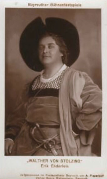 Enderlein, Erik, Tenor, * 18.2.1887 Dresden, † (?); eigentlich Emil Enderlein; er kam nach seiner Ausbildung 1912 als lyrischer Tenor an die Hofoper von Dresden, wo er bis 1917 blieb. 1917-18 war er am Stadttheater von Chemnitz engagiert, 1918 ging er an das Staatstheater von Schwerin, nachdem sich seine Stimme zum Heldentenor gewandelt hatte. 1919-26 gehörte er zum Ensemble des Stadttheaters Hamburg, wo er auch noch regelmäßig auftrat, nachdem er 1926 an die Städtische Oper Berlin gegangen war, der er bis 1928 angehörte. 1925 sang er bei den Festspielen von Bayreuth den Walther von Stolzing in den »Meistersingern«, 1927-28 in der Waldoper von Zoppot den Parsifal und den Siegfried in der »Götterdämmerung«. Nach seinen Auftritten in Bayreuth änderte er seinen eigentlichen Vornamen Emil in Erik um. 1926-29 gastierte er sehr erfolgreich an der Staatsoper von Wien, 1931-33 am Nationaltheater Mannheim. 1926 sang er als Gast am Teatro Real in Rom, 1928 am Stadttheater von Basel, 1929 an der Covent Garden Oper London (als Lohnegrin und als Tristan), 1929 auch an der Königlichen Oper Kopenhagen, 1930 am Opernhaus von Genf (im Nibelungenring), 1930 an den Opernhäusern von Belgrad und Zagreb, 1934 an der Oper von Monte Carlo (als Tristan). Zu seinen Opernpartien gehörten der Loge im »Rheingold«, der Hugo in Lortzings »Undine«, der Tamino in der »Zauberflöte«, der Florestan im »Fidelio«, der Erik im »Fliegenden Holländer«, der Pedro in »Tiefland« von E. d'Albert, der Kaiser in der »Frau ohne Schatten« von R. Strauss, der Herodes in »Salome« vom gleichen Komponisten, der Agamemnon in »Das Leben des Orest« von E. Krenek, der Jean im »Propheten« von Meyerbeer und der Chapelou im »Postillon de Lonjumeau« von A. Adam; er übernahm auch Partien in Operetten. Nach Beendigung seiner Karriere war er Gesanglehrer in Berlin, wo er 1947 noch lebte.
